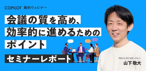 同じ議論の繰り返しや、会議疲れを脱却するためにできることとは。参加者を巻き込みながら会議の質を高める3つのポイントを、コパイロツトが2025年2月に開催したセミナーより、一部抜粋してご紹介します。目的明確化、アジェンダの準備、役割分担に注目です。